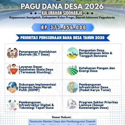 "SELAMAT DATANG DI WEBSITE KALURAHAN SIDOHARJO"